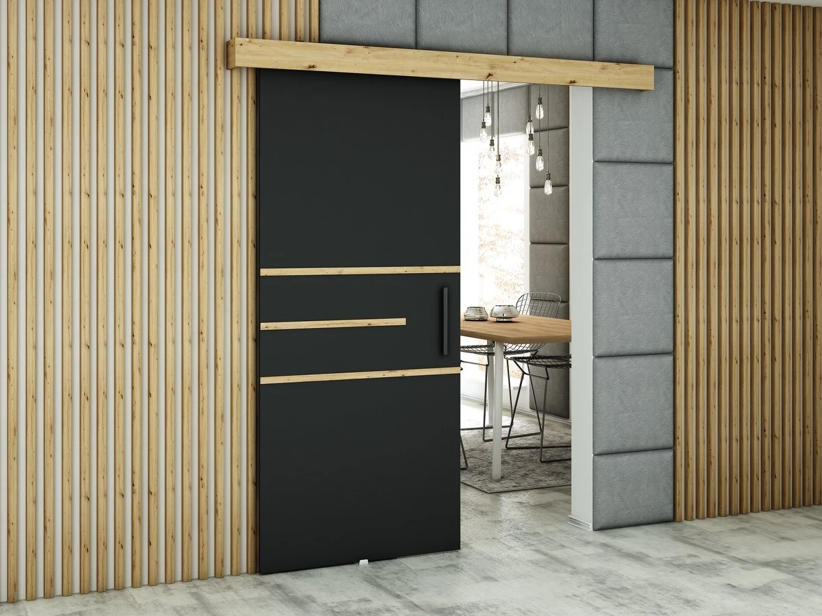 Système de porte coulissante LOPA IX – Zwart Mat + Chêne Artisan
