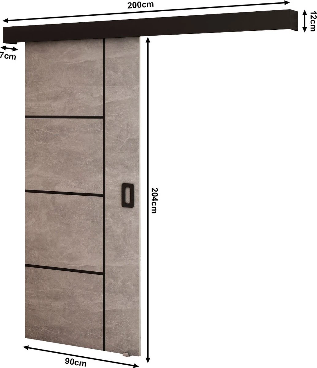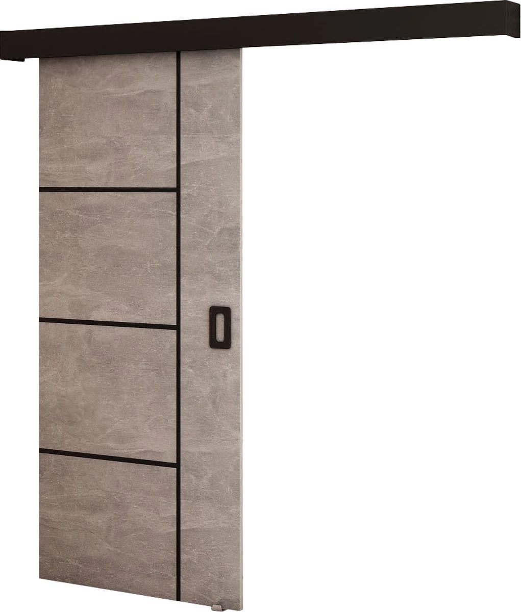Système de porte coulissante MAY V – Béton + Cadre Zwart + Poignée Zwart avec système Soft-Close