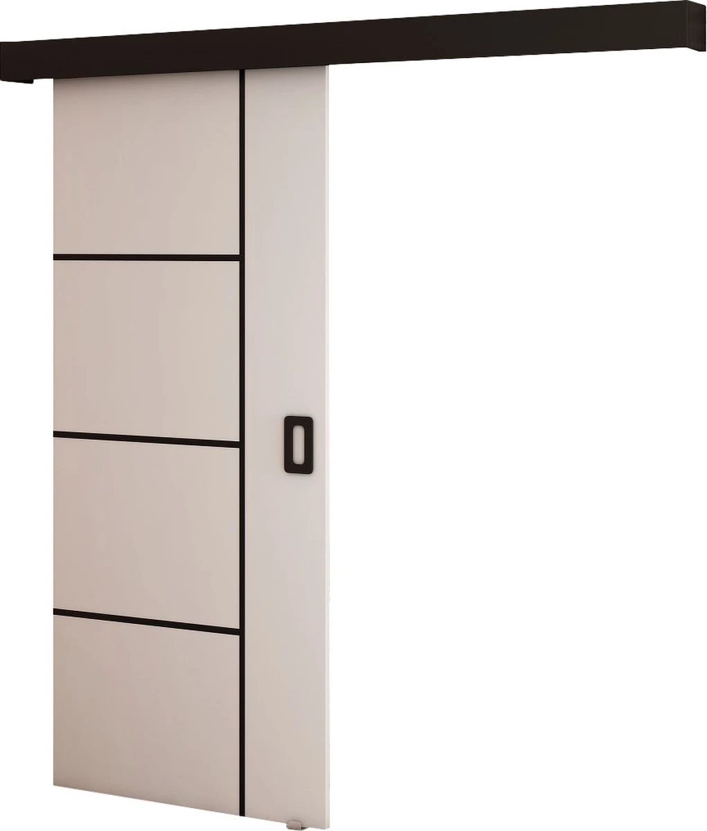 Système de porte coulissante MAY V – Wit Mat + Cadre Zwart + Poignée Zwart