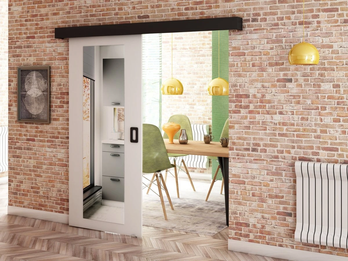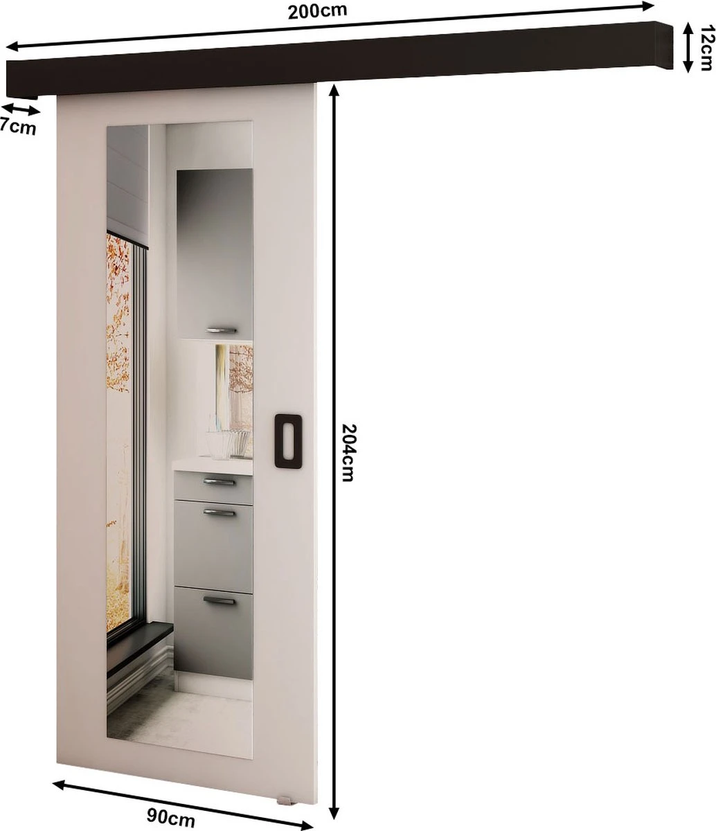 Système de porte coulissante MAY II – Wit Mat + Cadre Zwart + Poignée Zwart avec système Soft-Close