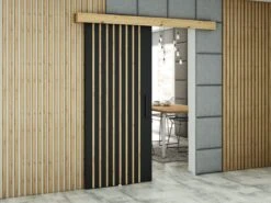 InspireMe – Système De Porte Coulissante Avec Rail – 90x204cm – LOPA I – Zwart Mat + Chêne Artisan