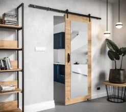 InspireMe – Système De Porte Coulissante Avec Rail – 90x204cm – PARKER II 90 – ChĂŞne DorĂ©