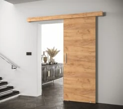 InspireMe – Système De Porte Coulissante Avec Rail – 90x204cm – AGRA I – Chêne Doré + Poignée Argent